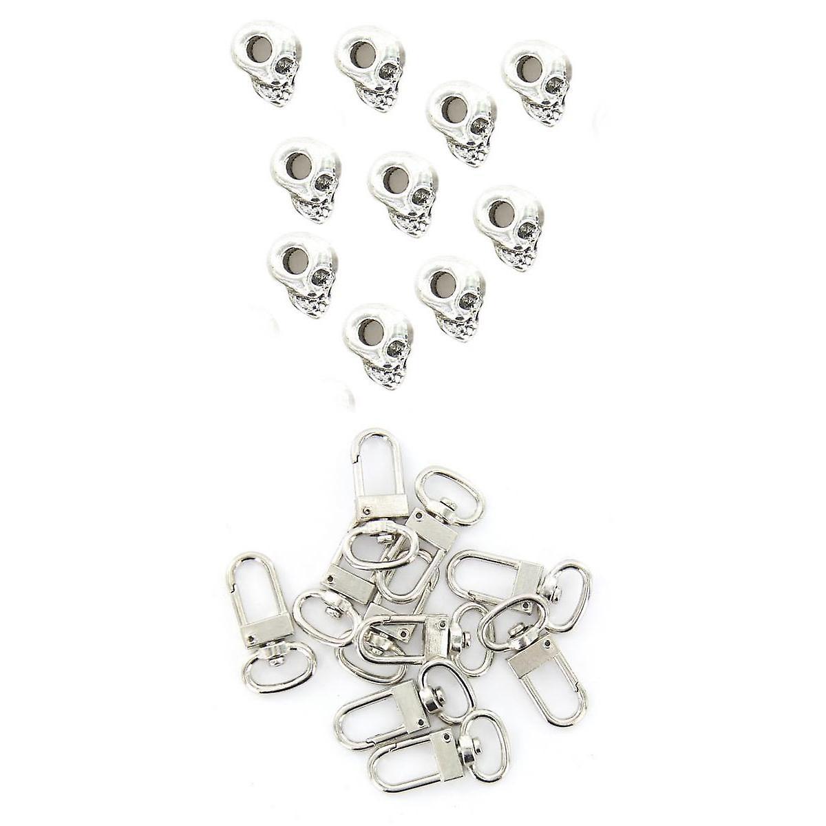 20pcs Swivel Trigger Snap Hooks Retro Skull Spacer Beads Jewelry Making