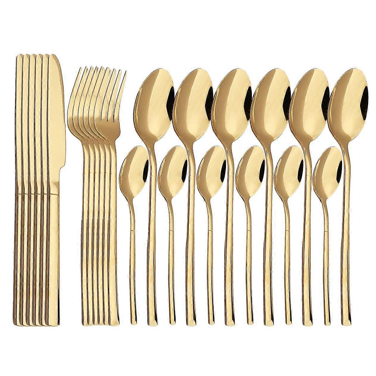 24Pcs Gold Dinnerware Set Stainless Steel Cutlery Set Knife Fork Spoon Dinner Set KitchenTableware Flatware Set Dishwasher Safe