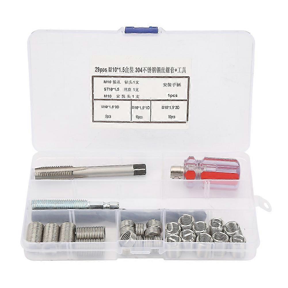 29Pcs/set Stainless Steel Wire Screw Sleeve Thread Repair Insert Kit Tool Set(M10*1.5)