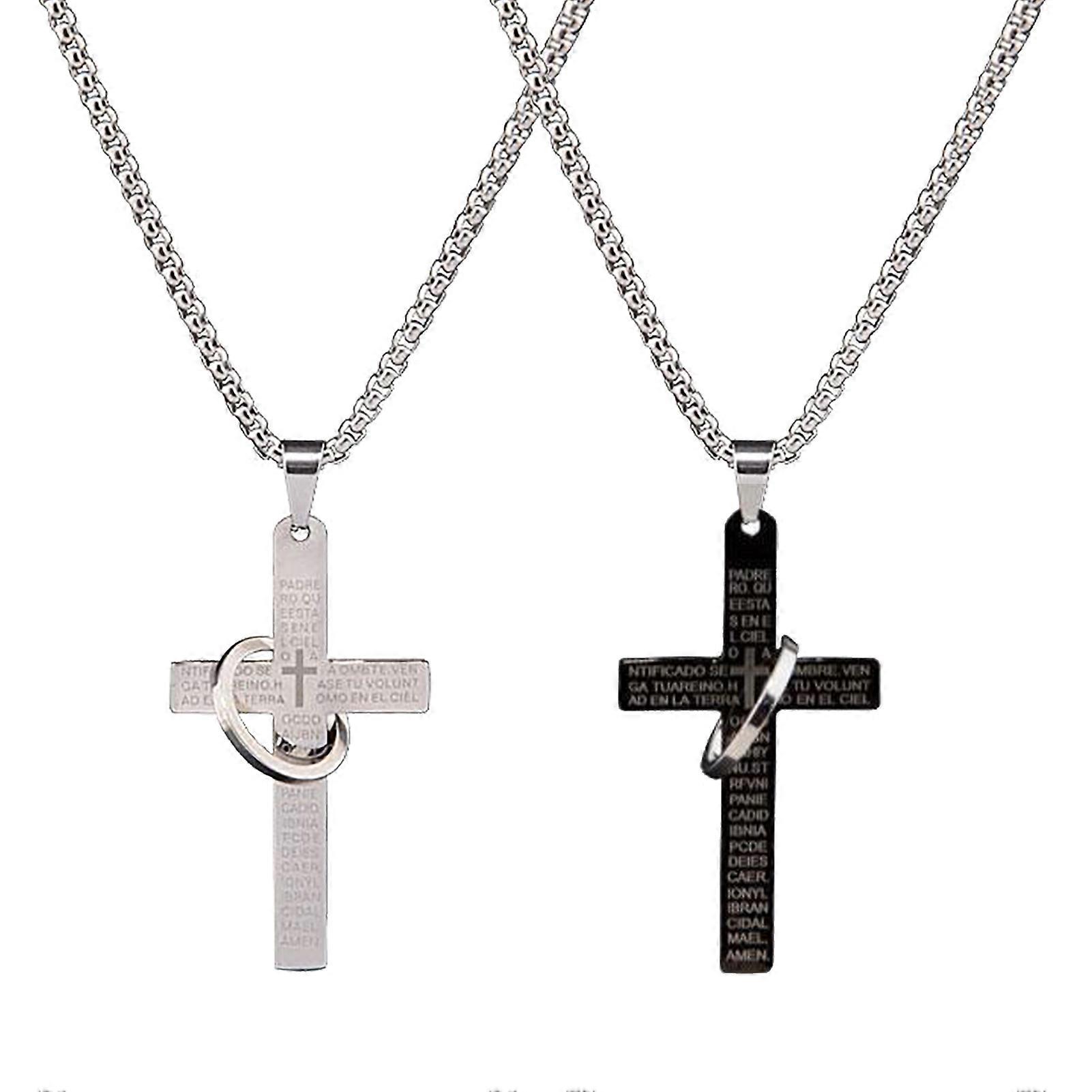 2pcs Cross Pendant Necklace Men Stainless Steel Simple Elegant Stylish Necklace for Dating Party