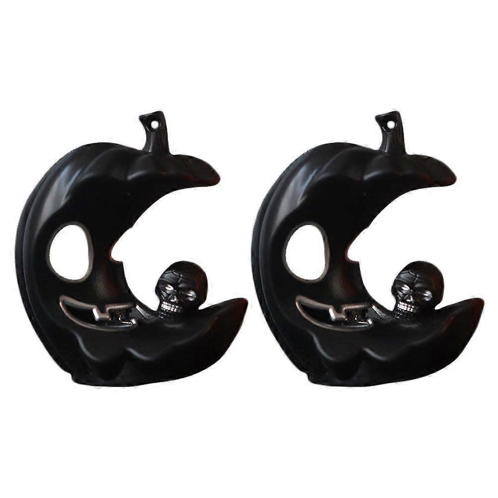 2pcs Halloween Candle Skull Light LED Night Light Moon Shaped Light (Orange)