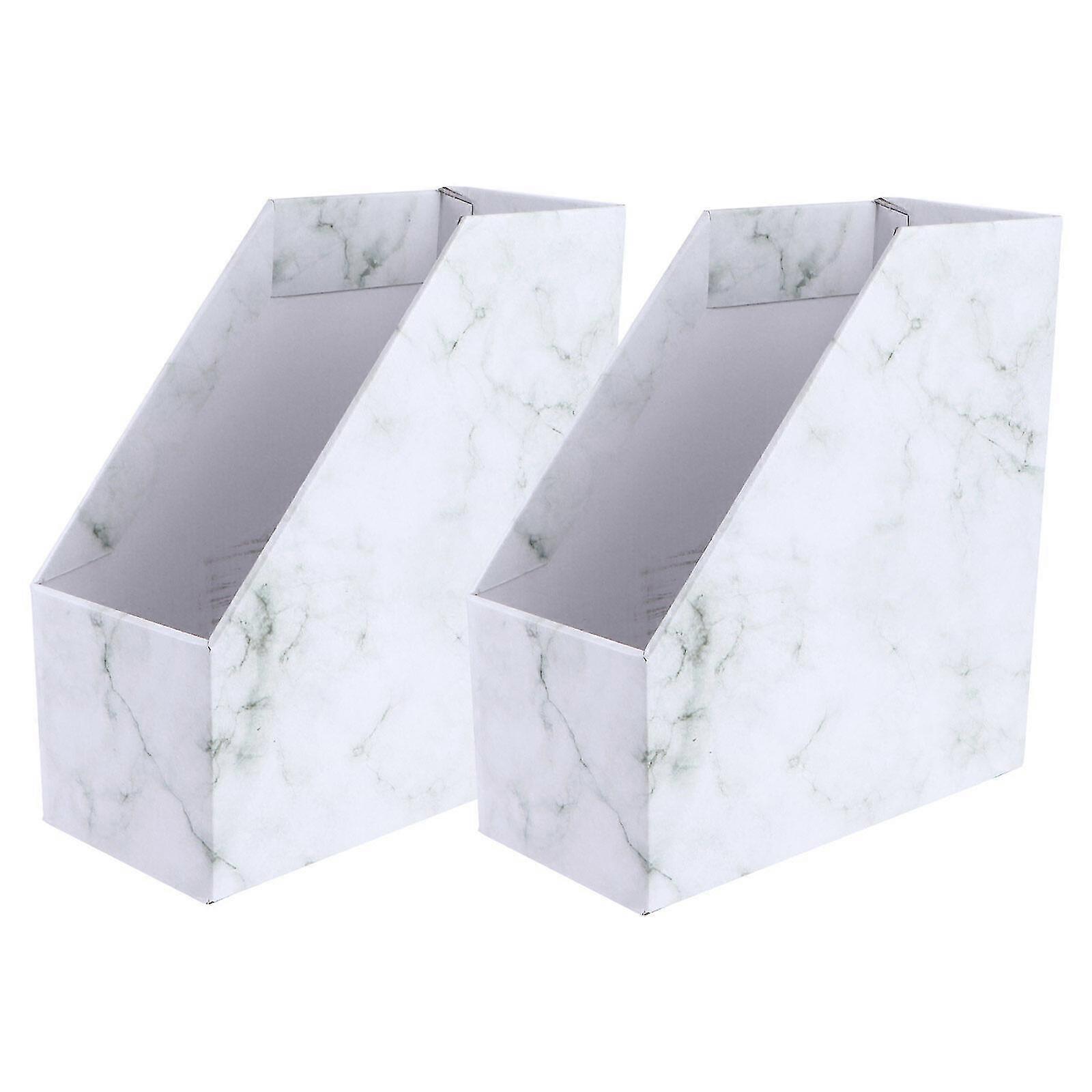 2pcs Marble Pattern Storage Boxes Desktop Storage Bookshelf Office File Racks