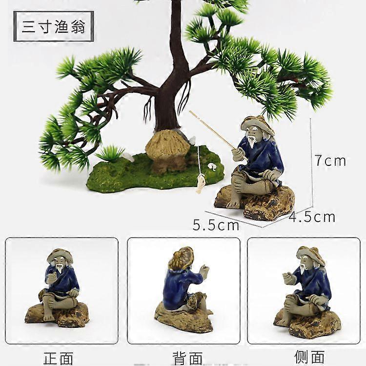 2PCS Mini Fisherman Figurines: Ceramic Fishing Statue Micro Landscape Ornament Asian Pottery Sculpture for Bonsai Decoration Zen Garden Decor