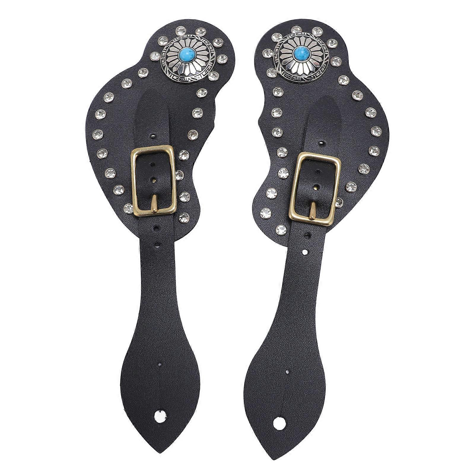 2Pcs Adjustable Spur Strap Set Black Artificial Leather Rhinestone Spur Holders for Cowboys Durable Western Accessories