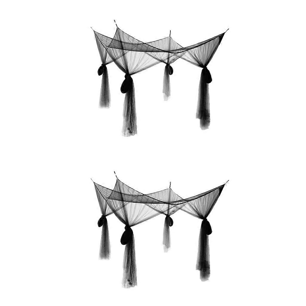 2x Black Hanging 4 Corner Post Bed Canopy Drape Fine Mesh Net for Summer