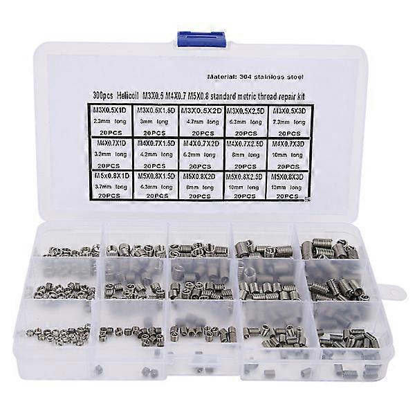 300 Pcs Threaded Insert Stainless Steel Thread Repair Tool M3x0.5 M4x0.7 M5x0.8