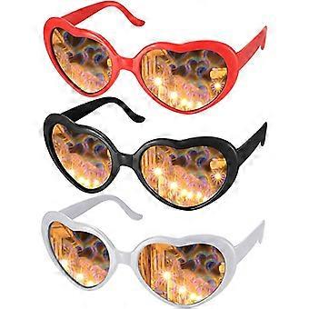 3 pièces coeur lunettes, 3D coeur lunettes à effet spécial, effets spéciaux lumière diffraction verres pour pleine musique/bar/feux d’artifice