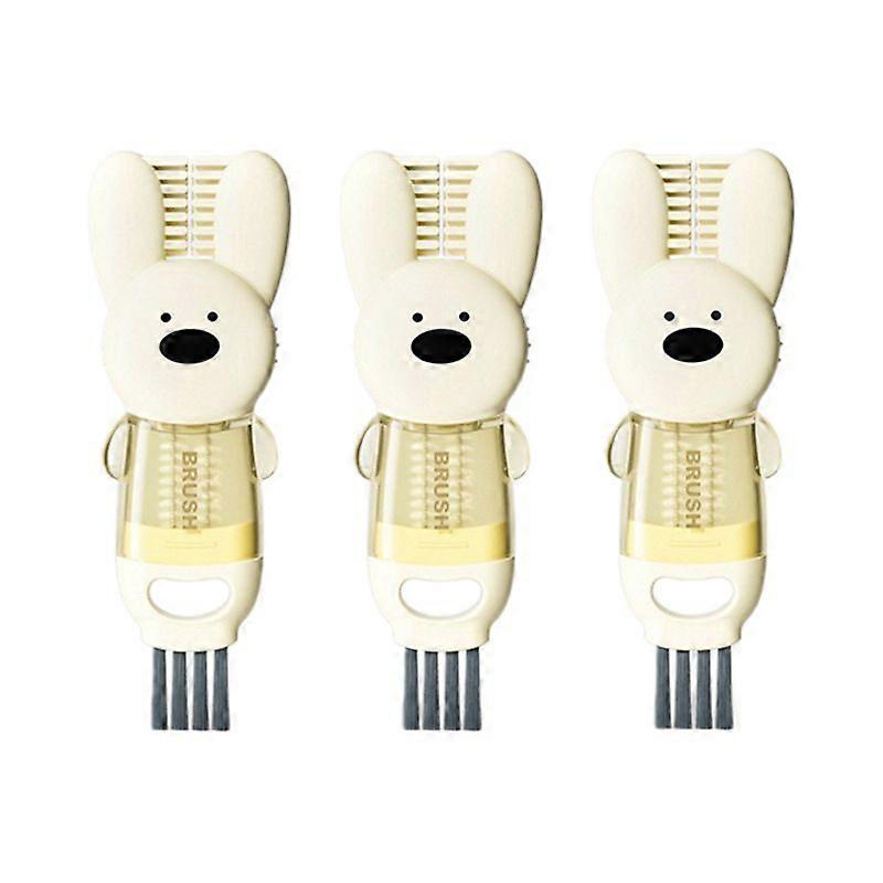 3pcs 3-in-1 Lid Brush Multi-Functional Cleaning Brush Bottle Nipple Rim Fluted Cup Brush Yellow
