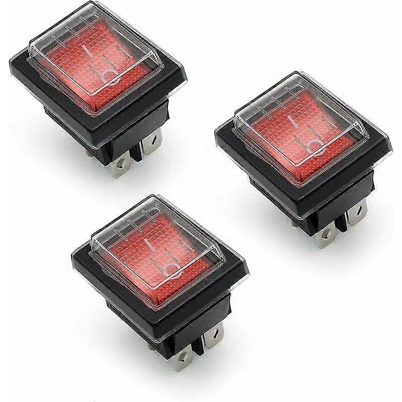 3Pcs Red Light ON/OFF Rocker Switch With Waterproof Cover 16A/250V 20A/125V AC(DPST)