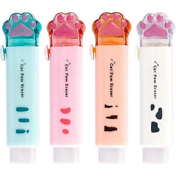 4 Pcs Push-Pull Cute Cat Paw Erasers Girls Pencil Eraser Student