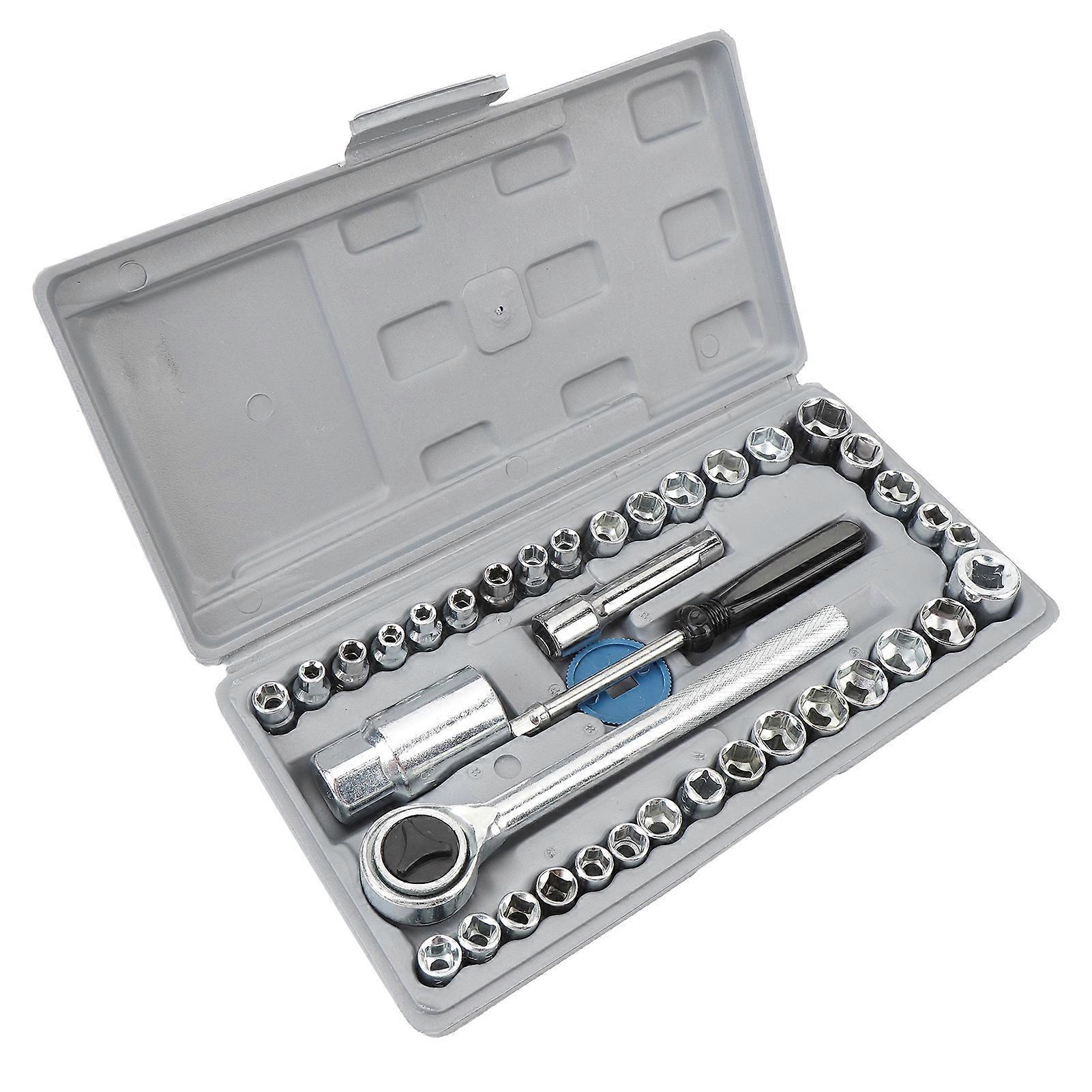 40PCS SAE Metric Socket Set Efficient Universal Fit 1/4 Inch 3/8 Inch Drive Socket Set for Automotive Motorcycle Home Repair