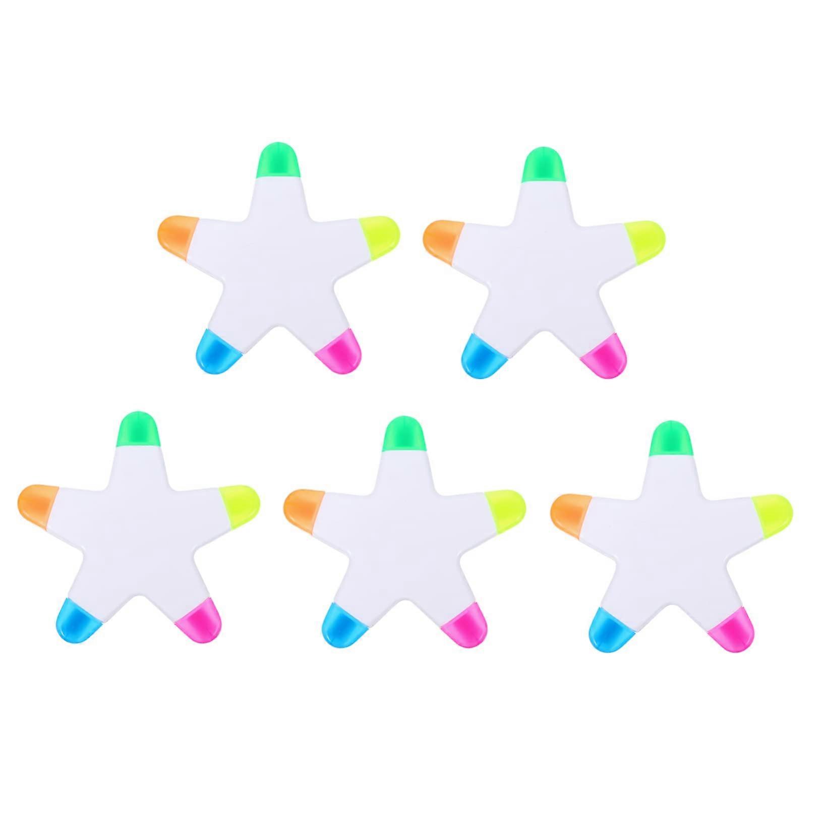 5支荧光笔套装 星形高亮笔 适用于创意项目标记和绘画 学校与办公人体工学设计