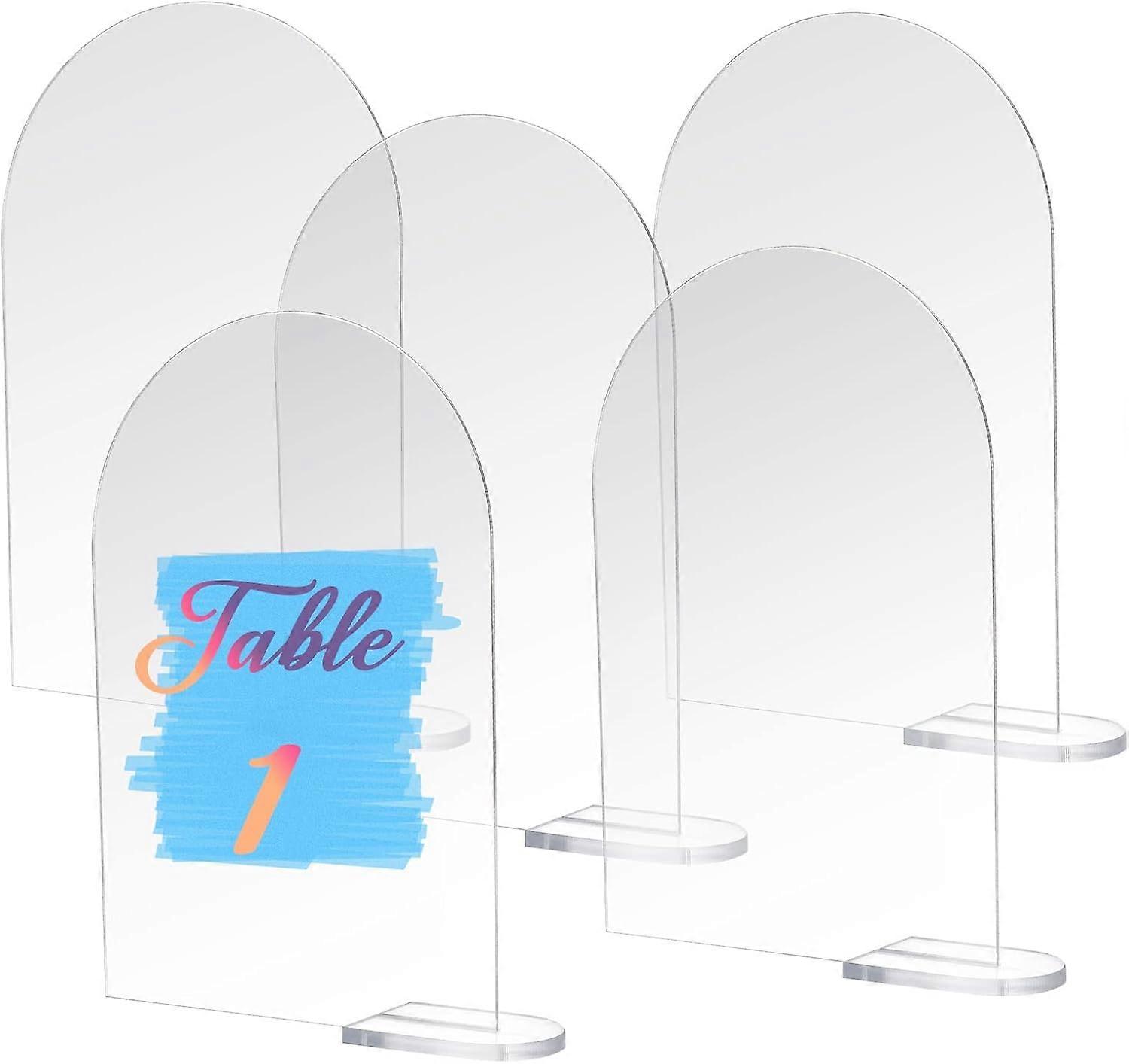 5 Pcs Arch Acrylic Table Sign With Holder, Clear DIY Table Number Holders Acrylic Table Numbers for Wedding Meetings Restaurant Office Clear