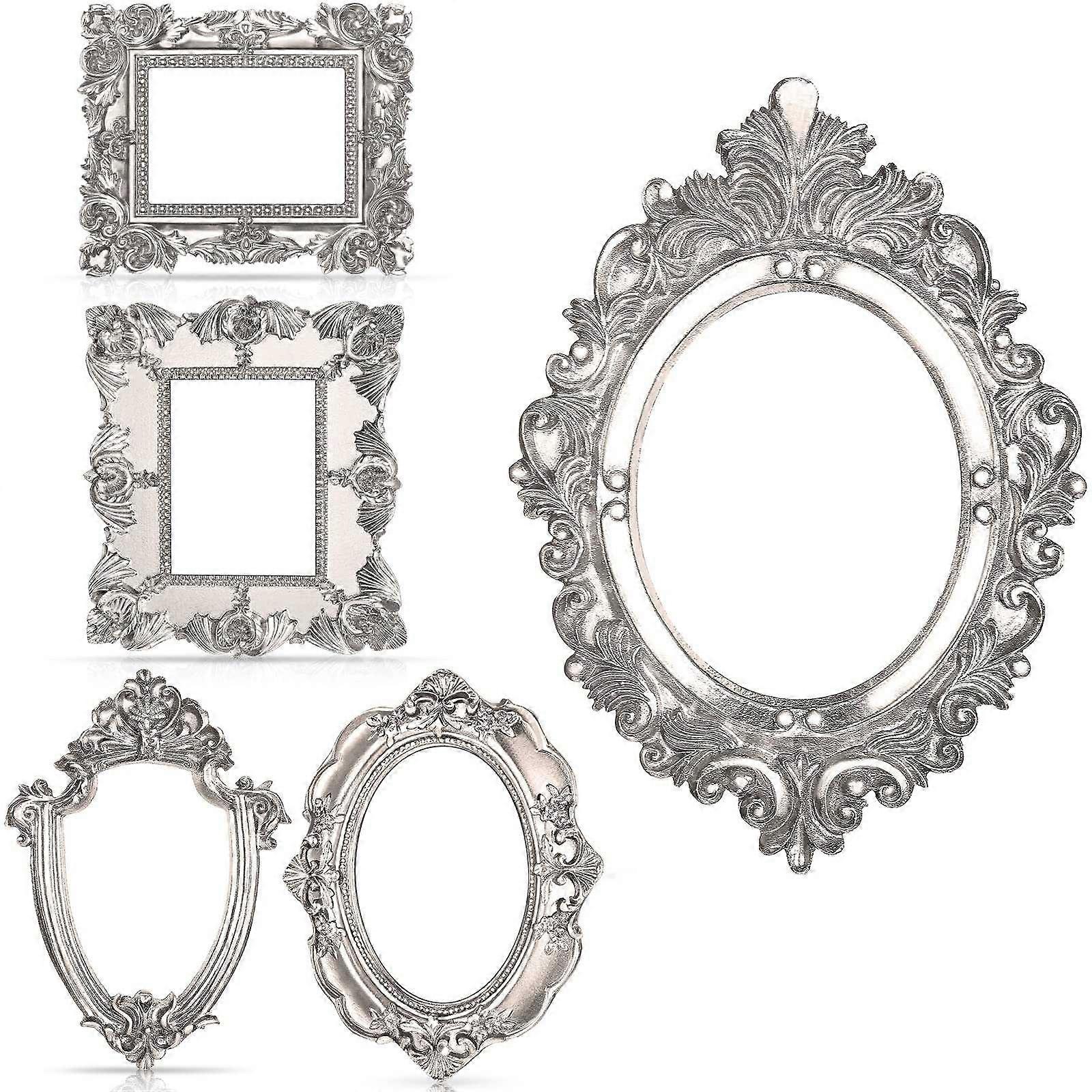 5Pcs Vintage Resin Picture Frame Flower Oval Rectangle Frame, Tabletop Jewelry Display Frame for Ph