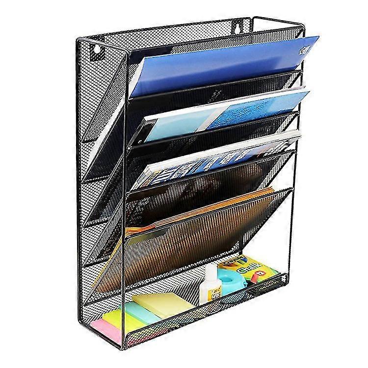 5 Pockets Mesh Wall File Holder Hanging Desk File Folder Magazine Rack Mail Sorter Bin Name Tag Included