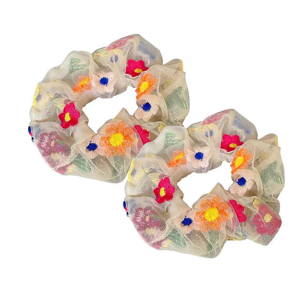 5Pcs Embroidered Flowers Ponytail Holders for Women and Girls in Multi Color for Daily Wearing and Special Occasions with Hair Holding Function