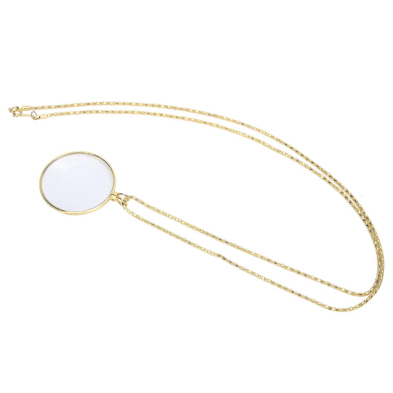5X Alloy Necklace Magnifying Glass Portable Reading Pendant Magnifier with ChainGold