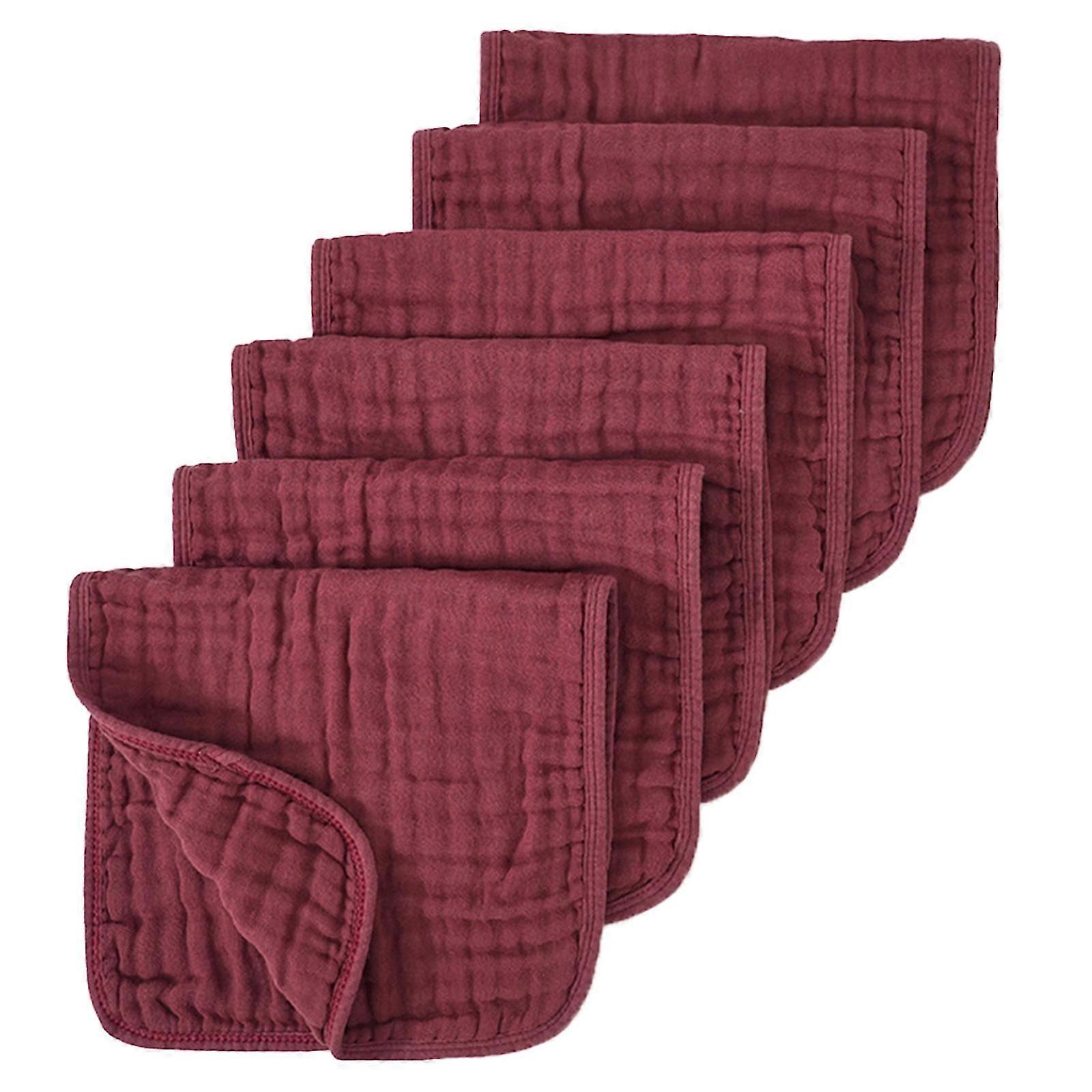 6pcs Multipurpose Cotton Drooling Bib Baby Saliva Towels Soft Absorbent Burp Cloths 6-Layer for Bath & Burping Claret