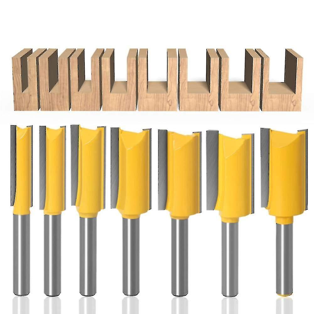 7 Pieces 1/4 Inch Shank Straight Router Bit Set, Tungsten Carbide Router Bit Wood Router Straight Cut Flush Trim Pattern Router For Woodworking