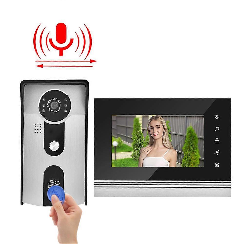 7 Inch Color LCD Touch Video Camera Doorbell Intercom Entry System Features: With rain cover, it is effective against rain and dust. Do not allow rain and dust to enter the inside of the fuselage. One-touch call, two-way intercom, call unlocking, convenient and fast. With 4 infrared night vision fill light, high-definition night vision effect, can also protect the home at night. With the industry's high-definition CMOS image sensor, the image is clear and natural. Support video intercom, infrared night vision, with unlock, monitor, and anti-disturbance function. 25 chord ring tones, ring volume adjustable. One-click monitoring to see the situation outside the door. Supports hands-free and handle-handed calls with clear sound and good sound quality. Specifications: Condition: Material: ABS Function introduction: 7inch color HD video intercom, infrared night vision doorbell, visual, non-disturbing, multi-in-one internal intercom. Photo recording, support TF card, UI interface menu, away from home mode Display: TFT-LCD 7 inch Resolution: 800*480 Receiver size: 226*165*20mm/8.9*6.5*0.8in Power adapter: 5V/1A Video output format: PAL and NTBS Video output: 1Vp-p CVBS Working current: <400MA Working frequency: 2.4G ISM digital common frequency Ringtones: 12 chord music Installation method: wall-mounted Color: silver Function introduction: video intercom, ID unlock, night vision surveillance Camera: 700 line CMOS color digital HD camera Power consumption: Standby ≤ 0W, work ≤ 2W Power supply mode: indoor extension power supply The best distance for night vision: 2--3 meters Camera angle: 90 degrees Night vision: 5 LED lights Operating temperature range: -20-+60 degrees Celsius Host material: acrylic panel Installation method: hanging wall Dimensions: (length) 180* (width) 98* (thickness) 40mm/7.1*3.9*1.6in Weight: Approx.1561g/55.1oz Package List: 1 * Outdoor Unit 1 * Indoor Unit 1 * White Test Line 2 * Instruction 1 * 2-core Line 1 * 4-core Line 1 * 5-core Line  5 * Screw  5 * Expansion Tube 1 * Wall Mounting 4 * ID Card
