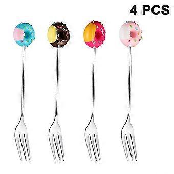 8 Pcs Donut Stainless Steel Dinner Forks, 4 Pcs Gold Forks And 4 Pcs Silver Forks Cutlery Set