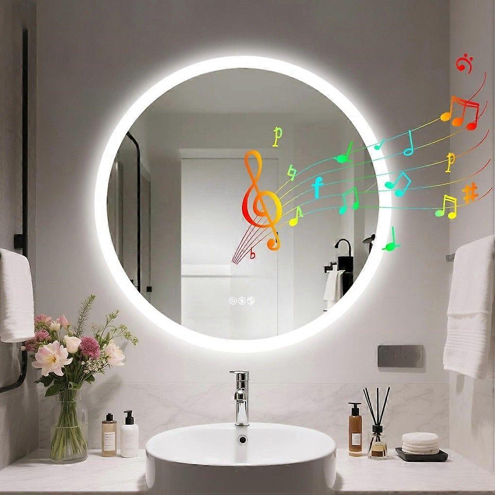 80cm Round Backlit LED Bathroom Mirror Bluetooth Speaker Anti-fog Frameless Vanity Mirror