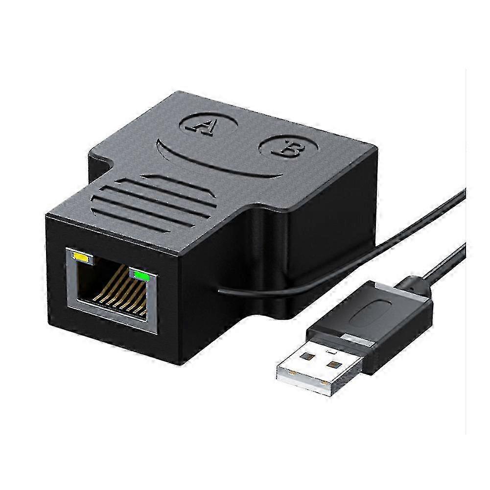 1 to 2 Ethernet Splitter USB to Dual-Female RJ45 Network Adapter for Simultaneous Internet Access