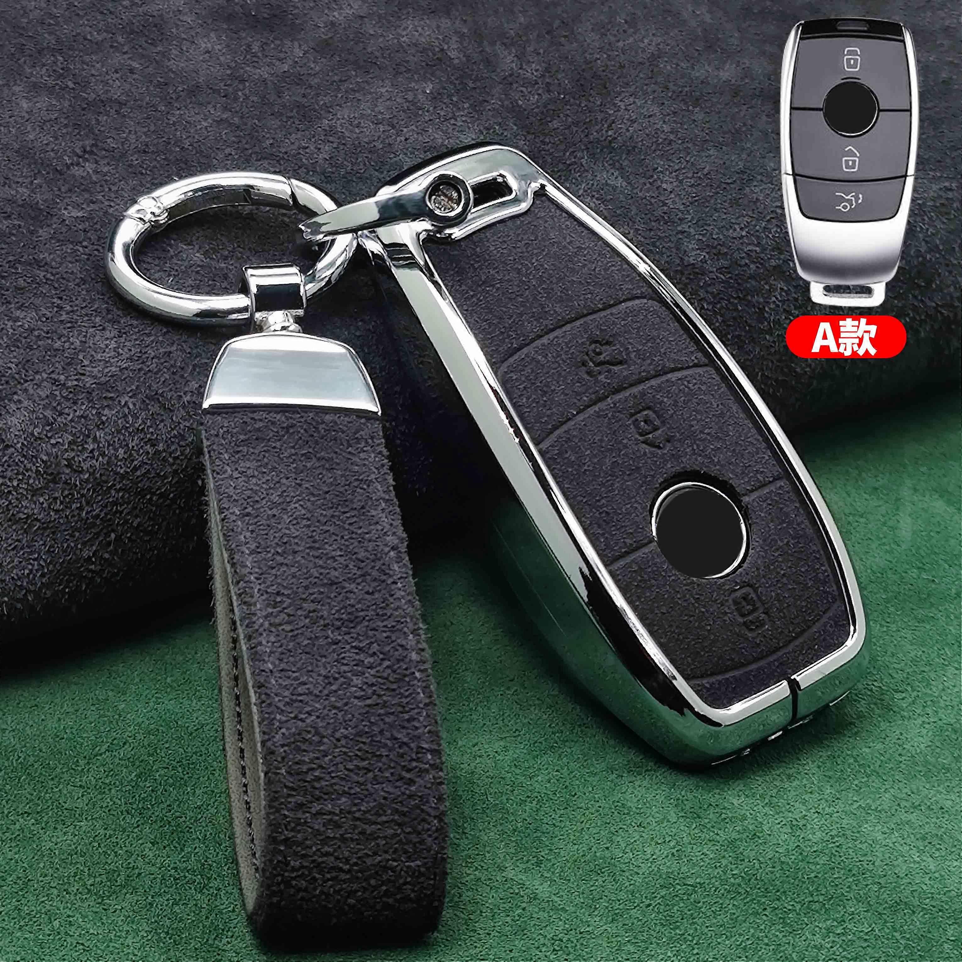 Fashion alloy + leather car remote key cover case for Benz ACESG Class GLC CLA GLB GLS W177 W205 W213 W222 X167~08546