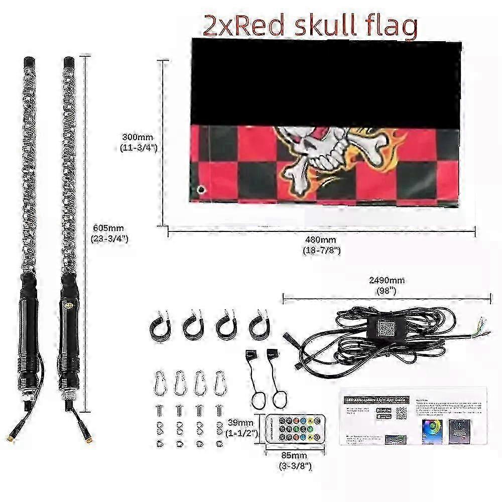 2FT LED Whip Lights Lighted Antenna Whips For ATV UTV Polaris RZR Off Road Truck Sand Buggy Dune Flagpole Lamp