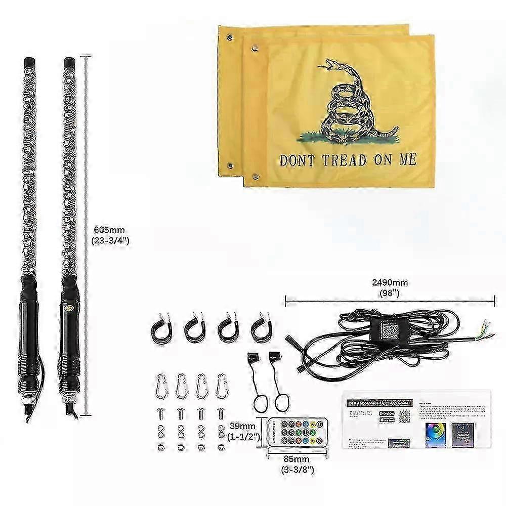 2FT LED Whip Lights Lighted Antenna Whips For ATV UTV Polaris RZR Off Road Truck Sand Buggy Dune Flagpole Lamp