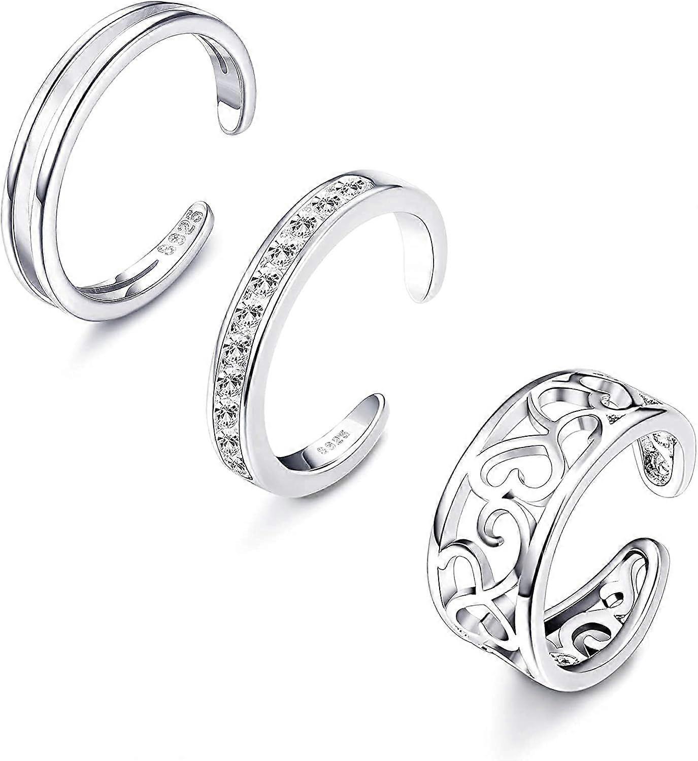 925 Sterling Silver Open Rings Adjustable Toe Rings Set Finger Ring Fashion