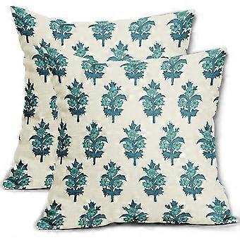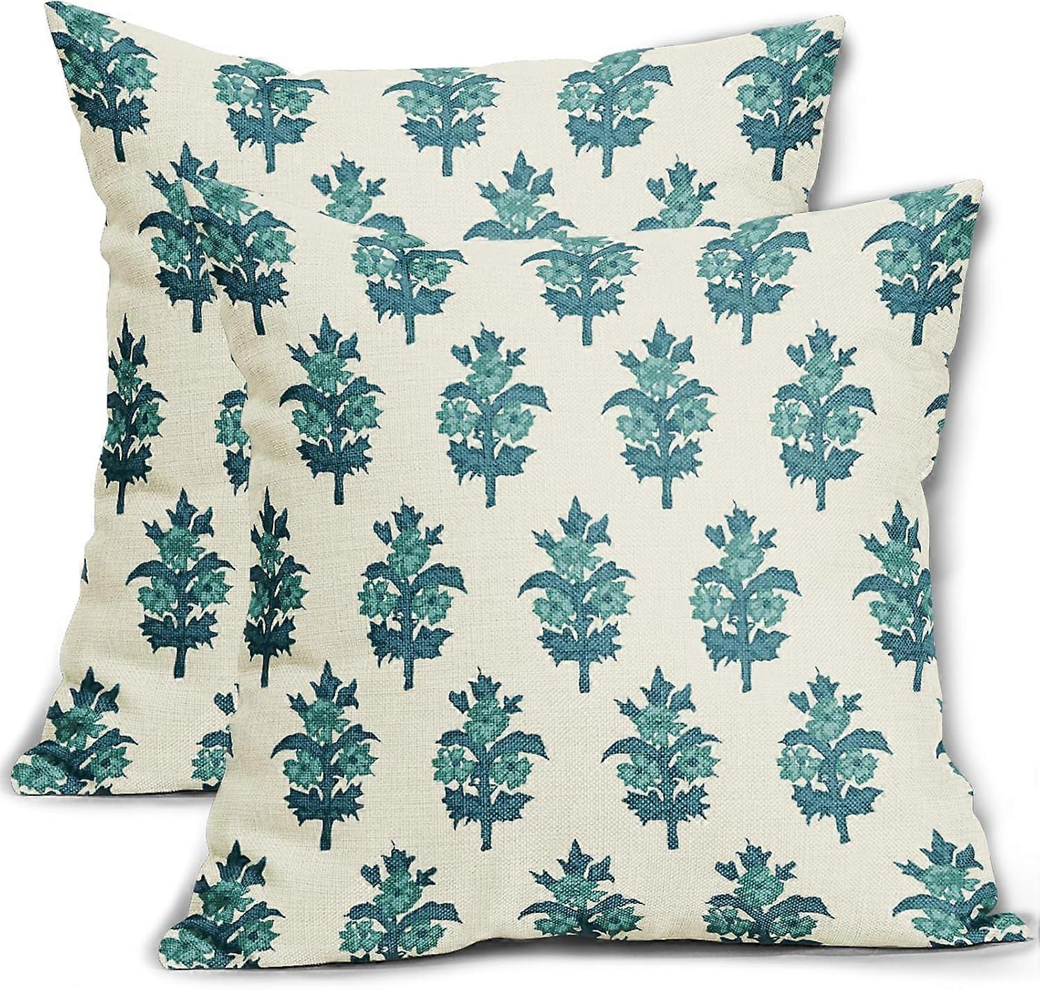 Auqa Teal Floral Pillow Covers 20x20 Set of 2 Spring Summer Flower Leaves Print Decorative Throw Pillow Cases Outdoor Farmhouse Decoration for Sofa Co