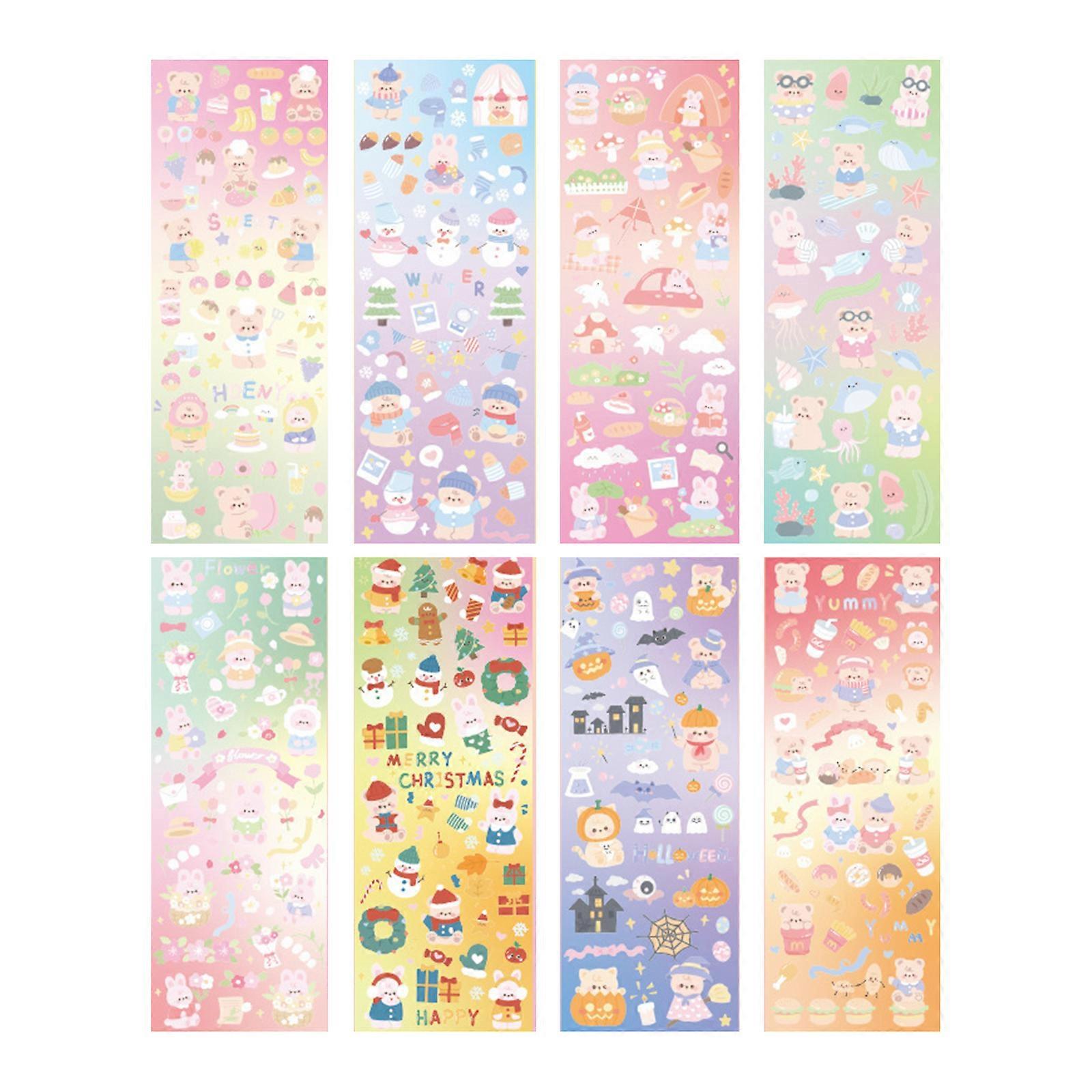 Transparent Cartoon Stickers Scrapbooking Stickers PET Decorative Stickers for DIY Crafts Gifts