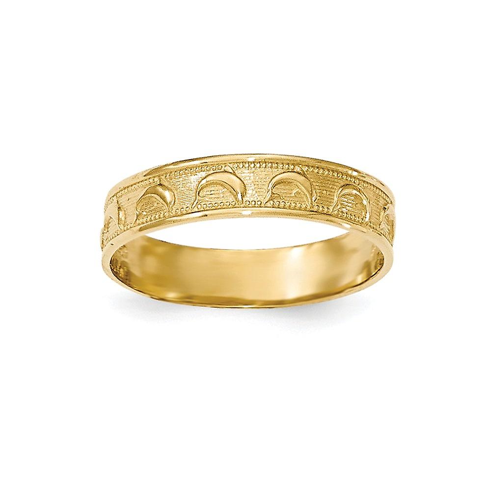 14k Yellow Gold Polished and Textured Dolphin Engraved Thumb Ring Size 8.00-Ring for Women