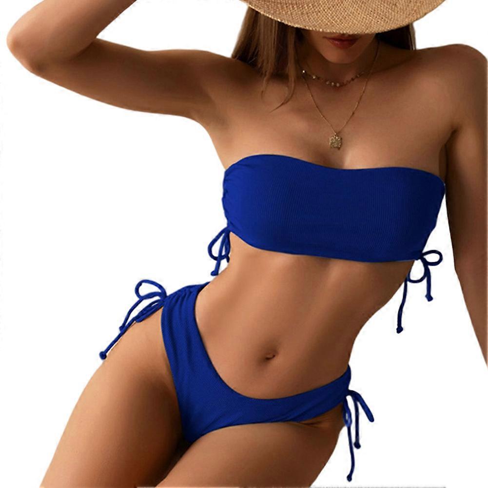 Blue M Women Halter String Bikini Set Sexy Thong Cheeky Two Piece Swimsuits Solid Color Bathing Swimwear