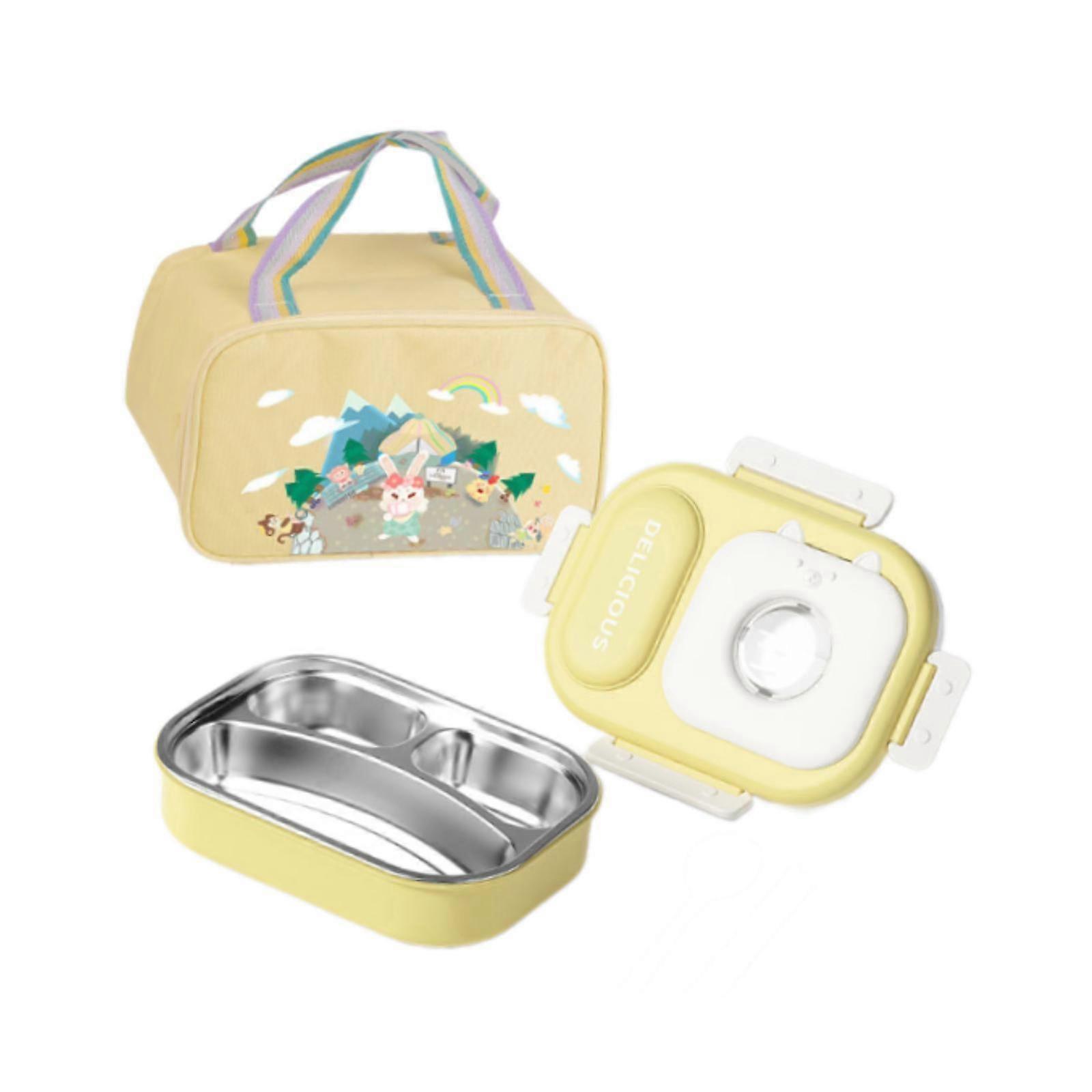 Bento Lunch Box Compartments with Utensils Portable for Kitchen Work Camping Pink 3 Grid
