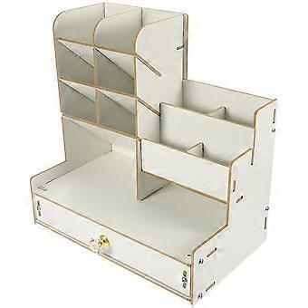 Wooden Desk Organizer Box Multi Functional Pen Holder Large Capacity Multi Compartment Storage Office Desktop Stationery Compact Space Saving Design