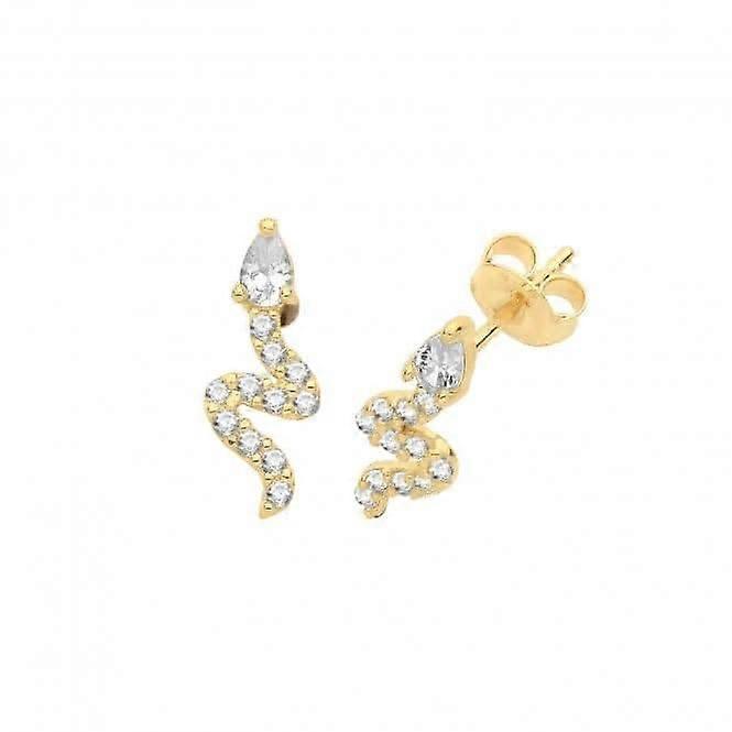 9CT Yellow Gold Snake Stud Earrings with Zirconia Details ES1609