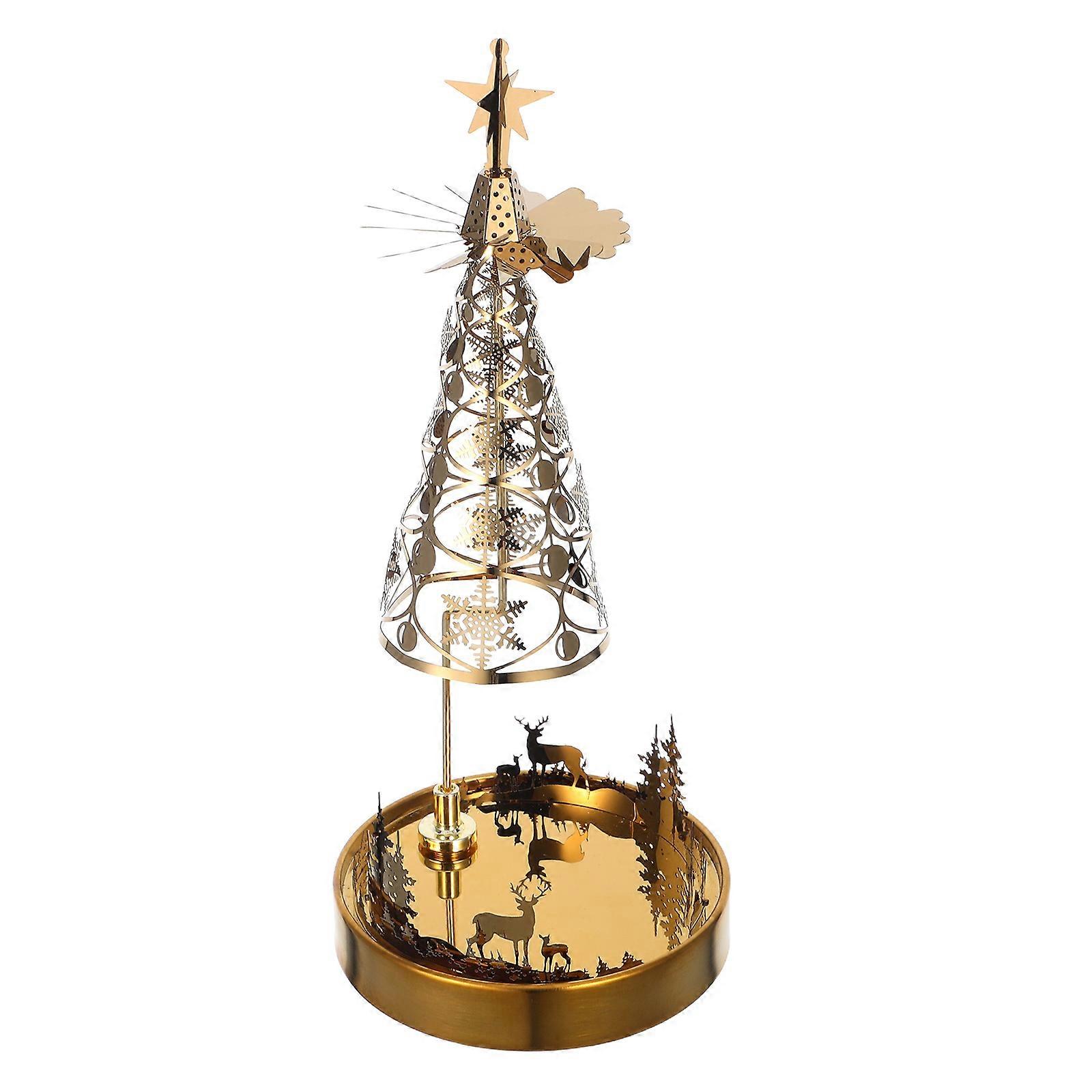Golden Rotary Tea Light Candle Holder for Christmas Iron Spinning Carousel