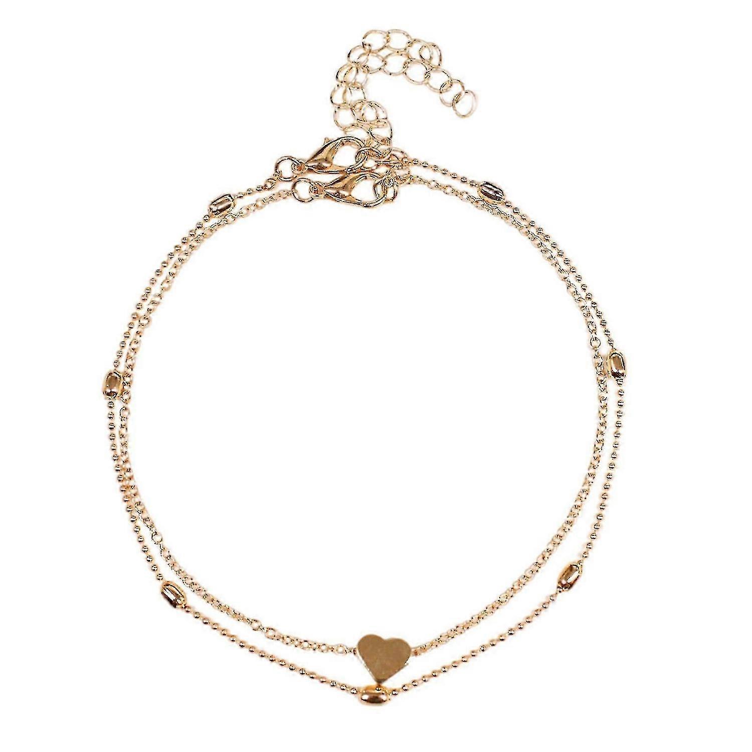 Vintage Heart Shaped Anklet Dainty With Bead For Beach Holiday Women Golden