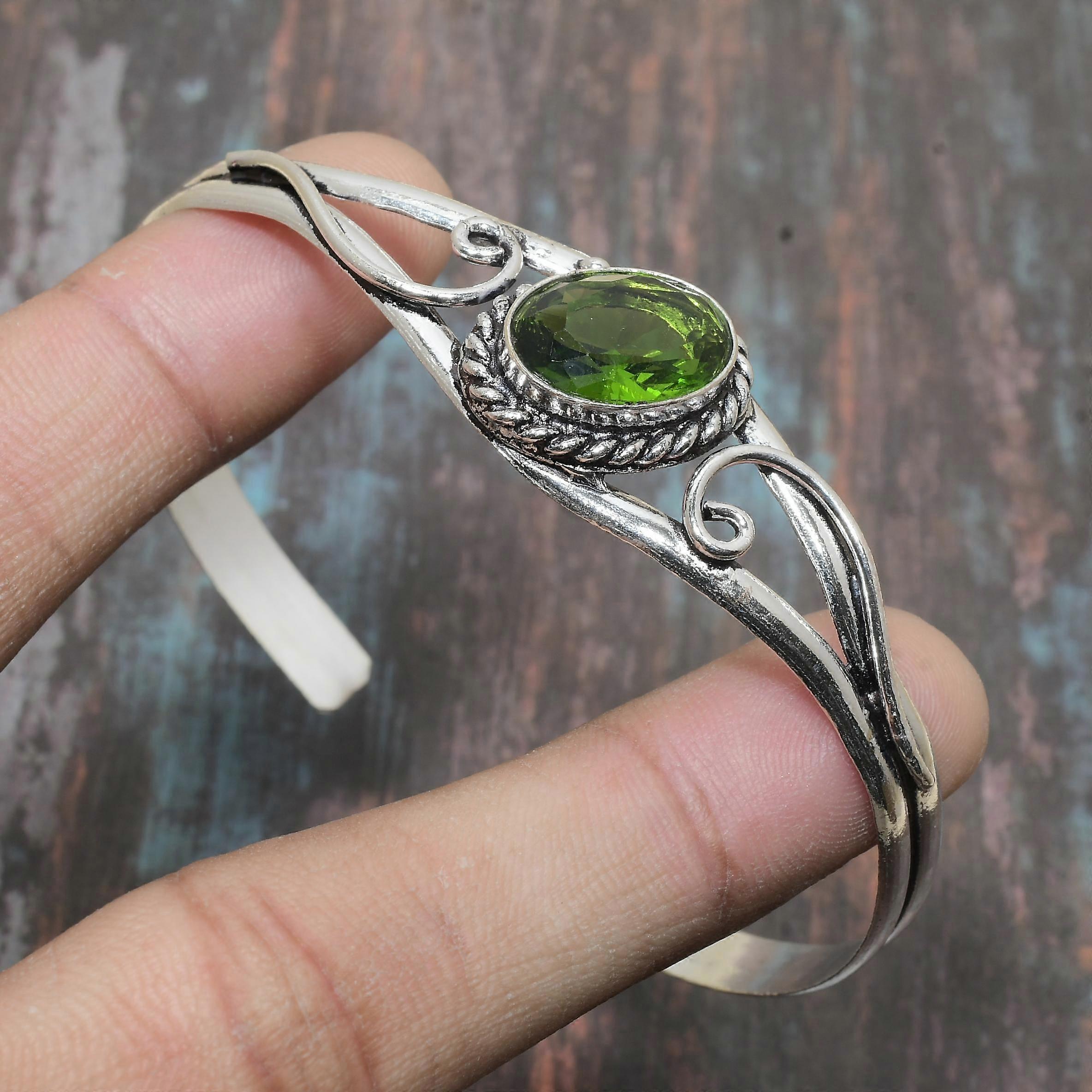 Peridot Gemstone Handmade Solid 925 Sterling Silver Cuff Jewelry Bangle Adjustable