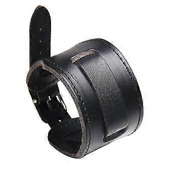 Wide Punk Leather Bracelet With Adjustable Alloybuckle