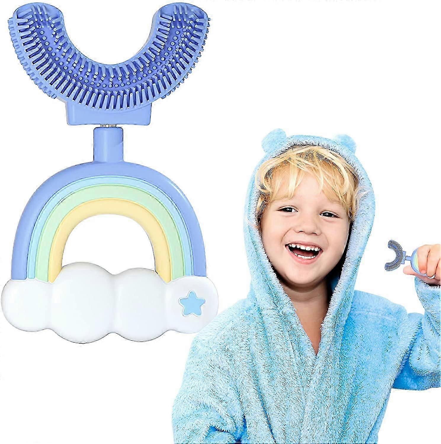 U-Shaped Silicone Toothbrush for Kids (Ages 2-6) Soft Bristles for Gentle 360-Degree Oral Cleaning in Blue