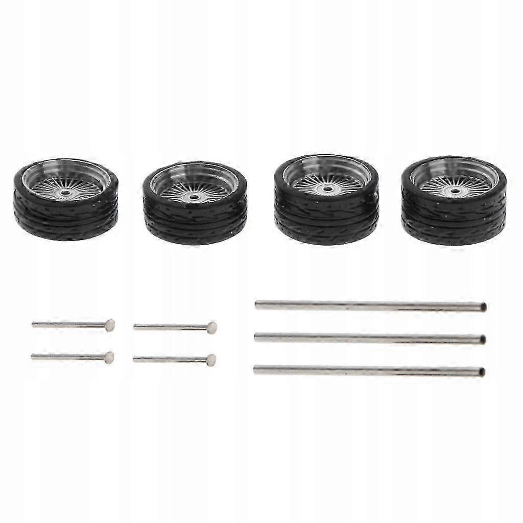 Scale 1:64 11mm Rubber Tire Wheels For Car Vehicle Parts B1 Description: Rubber Wheel Tyres 1 or 64 Car Tyres etc. Easy to install and use. Compact and convenient to carry. Material: rubber, stainless steel Front wheel width: 4,2 mm, rear wheel width: 5,2 mm, diameter: 11 mm The package includes: 4 pieces of wheel tires 3 pieces 25mm hollow shaft 4 pieces of nails