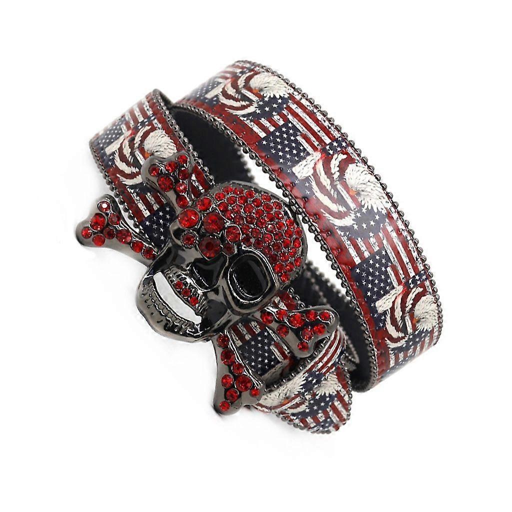PU Waist Belt with Diamond Skull Buckle for Fashion Enthusiasts Jeans Skirt