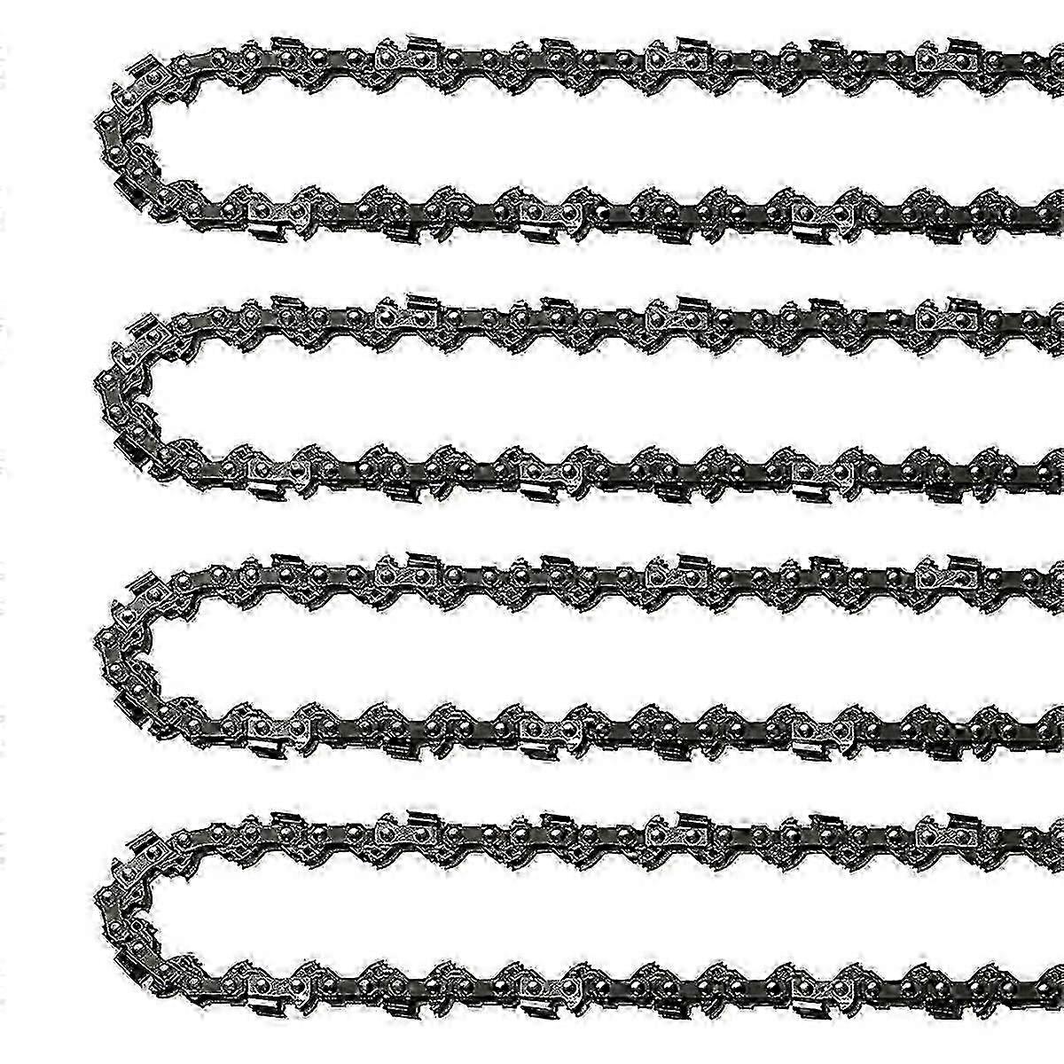 4-Pack 14-inch Chainsaw Chain: 3/8 inch LP Pitch, 0.050 inch Gauge, 52 Drive Links. Please check length and drive links to ensure compatibility with your 14-inch chainsaw or pole saw. Meets ANSI performance standards. Designed for smooth cutting with deep hardening for optimal lubrication and longer service life. Wear-resistant, cuts quickly with minimal resistance, high hardness, not easy to break, durable and practical. Compatible with most 14-inch chainsaws and pole saws. Easy to install and replace, heat-treated and quenched rivets strengthen link connections. Material: Steel. Colour: As Shown. Package Contents: 4 x 14 Inch Chainsaw Chain. Note: Light reflection and different displays may cause slight color variation; measurement error allowed +/-1-3cm.