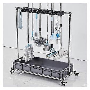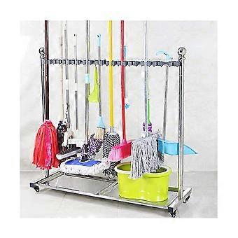 Broom Mop Holder Cleaning Tool Cart with Wheels, SpaceSaving Organizer for Garden Garage Schools