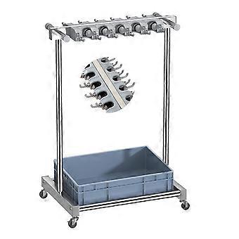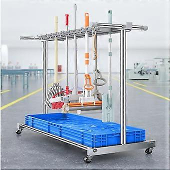 HeavyDuty Stainless Steel Mop and Broom Holder with Wheels, Double Row Rack with Drain Basin
