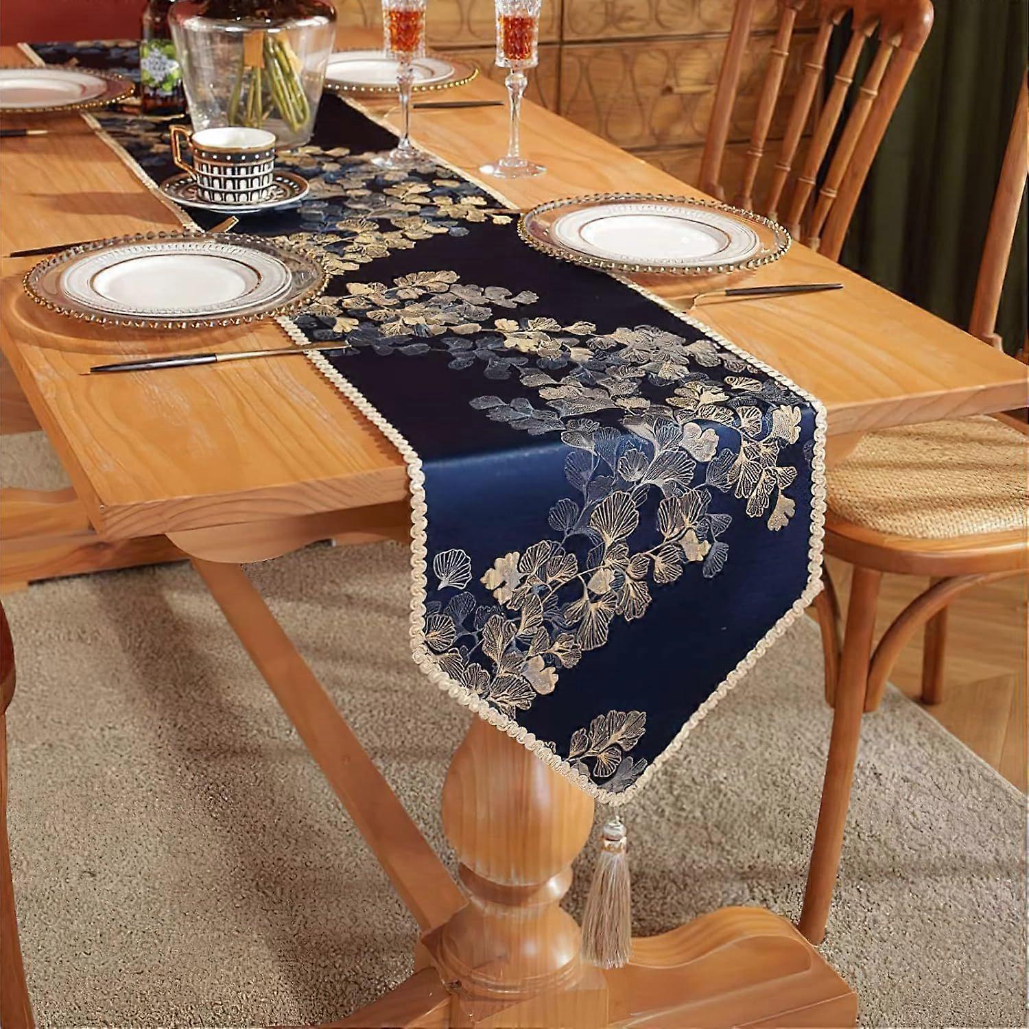 Cotton Table Runner, Ginkgo Leaf Cotton Linen Table Runner