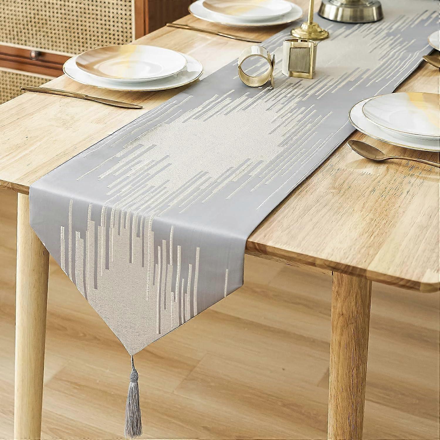 Table Runner Grey 30x180cm Luxury Dining Table Runner with Tassel Durable Table Runner